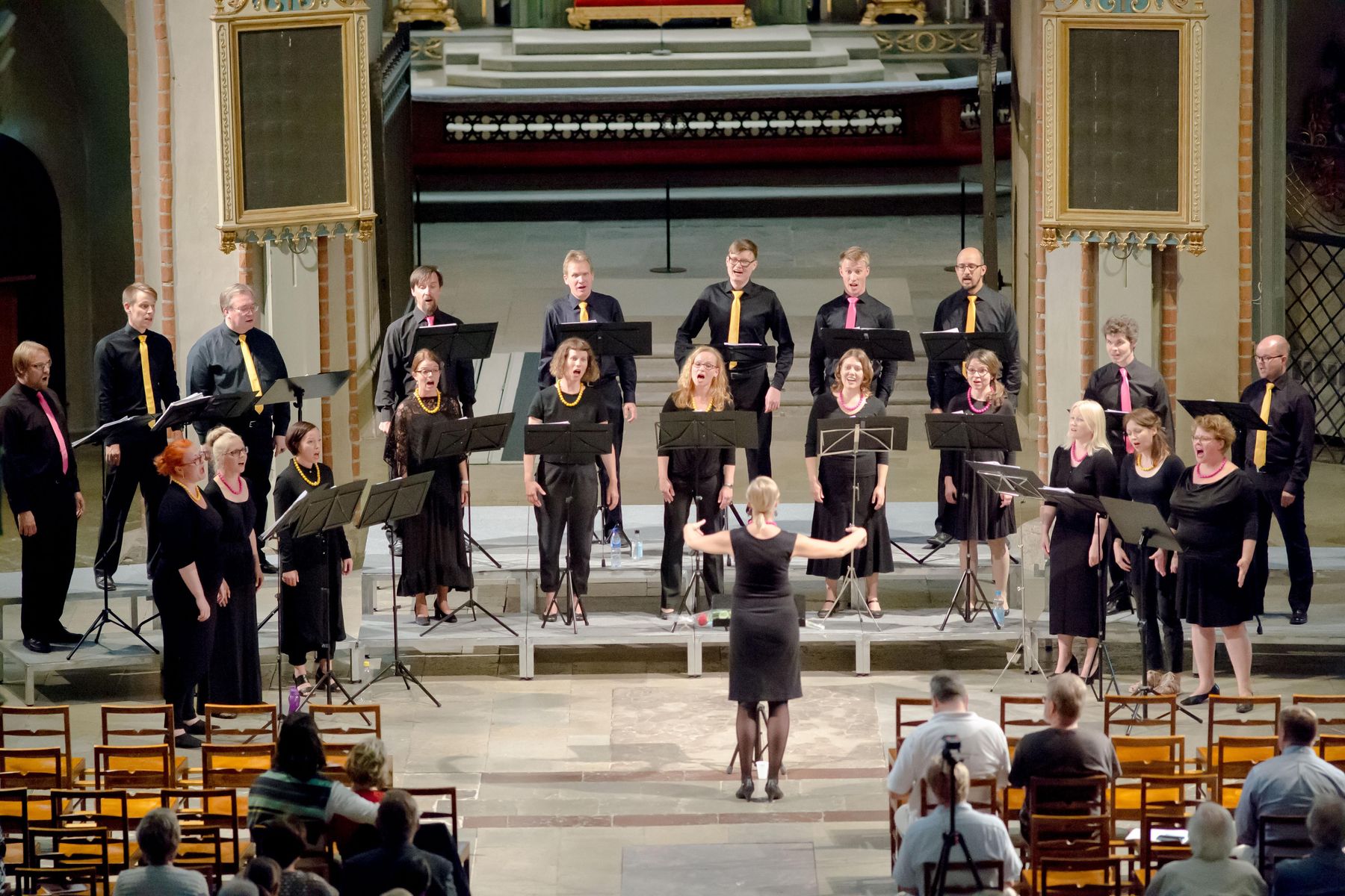 Kesäkuussa 2025 Kuuntele!-konsertti pysähtyi kysymään, millaista olisi, jos tuottaisimme vähemmän melua ja kuuntelisimme enemmän? Konsertti yhdisti kuoromusiikin elektronisiin ääniin. Lauluissa kuunneltiin mm. ukkosta, kirkonkelloja, rukouksia, merta ja maata. Pian konsertin jälkeen saimme Tampereen Sävelen kuorokatselmuksesta toiseksi parhaan palkinnon, kaksi kultaleimaa. Kuuntele!-konsertin uusinta syyskuussa sai kiittävät arvostelut sekä Helsingin Sanomissa että Kuoromusiikin Kausikonserttien kritiikissä.
